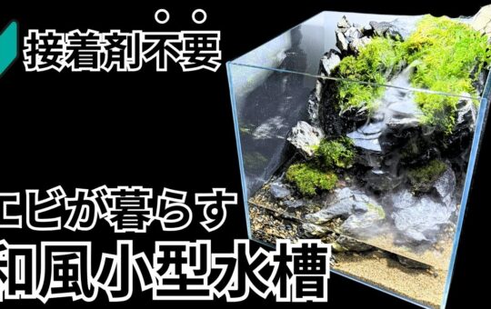 【エビの小型水槽】苔と石を使った”和風エビ水槽レイアウト”
