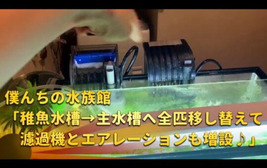 【僕んちの水族館】稚魚水槽→主水槽へ全匹移し替えて濾過機とエアレーションも増設♪|アクアリウムの先輩方ご指摘ありがとうございます!
